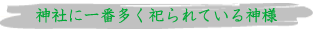 神社にお祀りする神を御祭神と言います。祀られる神は、八百万の神と言われるように実に